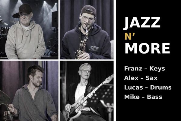 JAZZ N‘ MORE - eine ambitionierte Combo , die sich aus versierten Musikern der lokalen Regensburger Musik-Szene formierte , pflegt neben klassischen Latin- und Swing - Nummern ein besonderes Faible für mitreißende Funk-Jazz Nummern bzw. auch Pop inspirierte Instrumental Stücke, die mit groovenden Rhythmen und individuellem Sound arrangiert und interpretiert werden.
