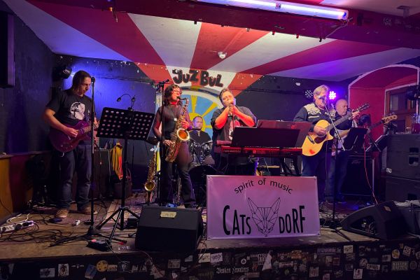 Catsdorf - eine Band aus der Region Teublitz - ist vielschichtig: neben traditionellen Rockstücken hört ihr Bluesmusik aus den 60-er und 70-er Jahren, keine arrangierten Pop-lieder sondern Stücke mit ausgedehnten Rock- und Blueselementen, mit Improvisationen durch Sax und Sologitarre.